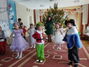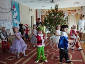 казковий герой Ялинка-веселинка (Єремеєва Л.М.) приготувала сюрпризи для малят – цукерки, горішки та мандаринки, з якими вони танцювали. Діти із задоволенням грали, співали, декламували вірші та розважали Ялинку, яка від радості аж засвітилася та ще й начарувала кожному новорічний подаруночок.